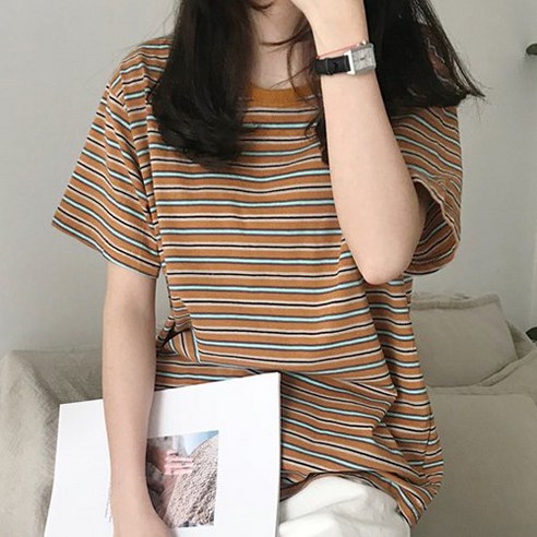 묘먀미 여성용 빈티지 스트라이프 반팔티 MMM313